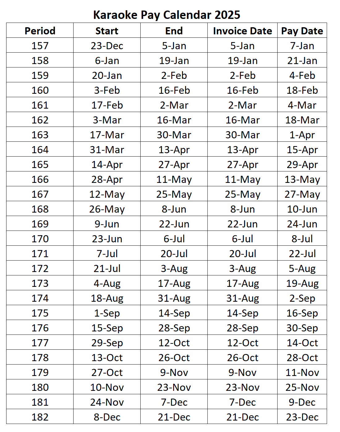 You will receive your pay by interac e-transfer. The password is “karaoke”.